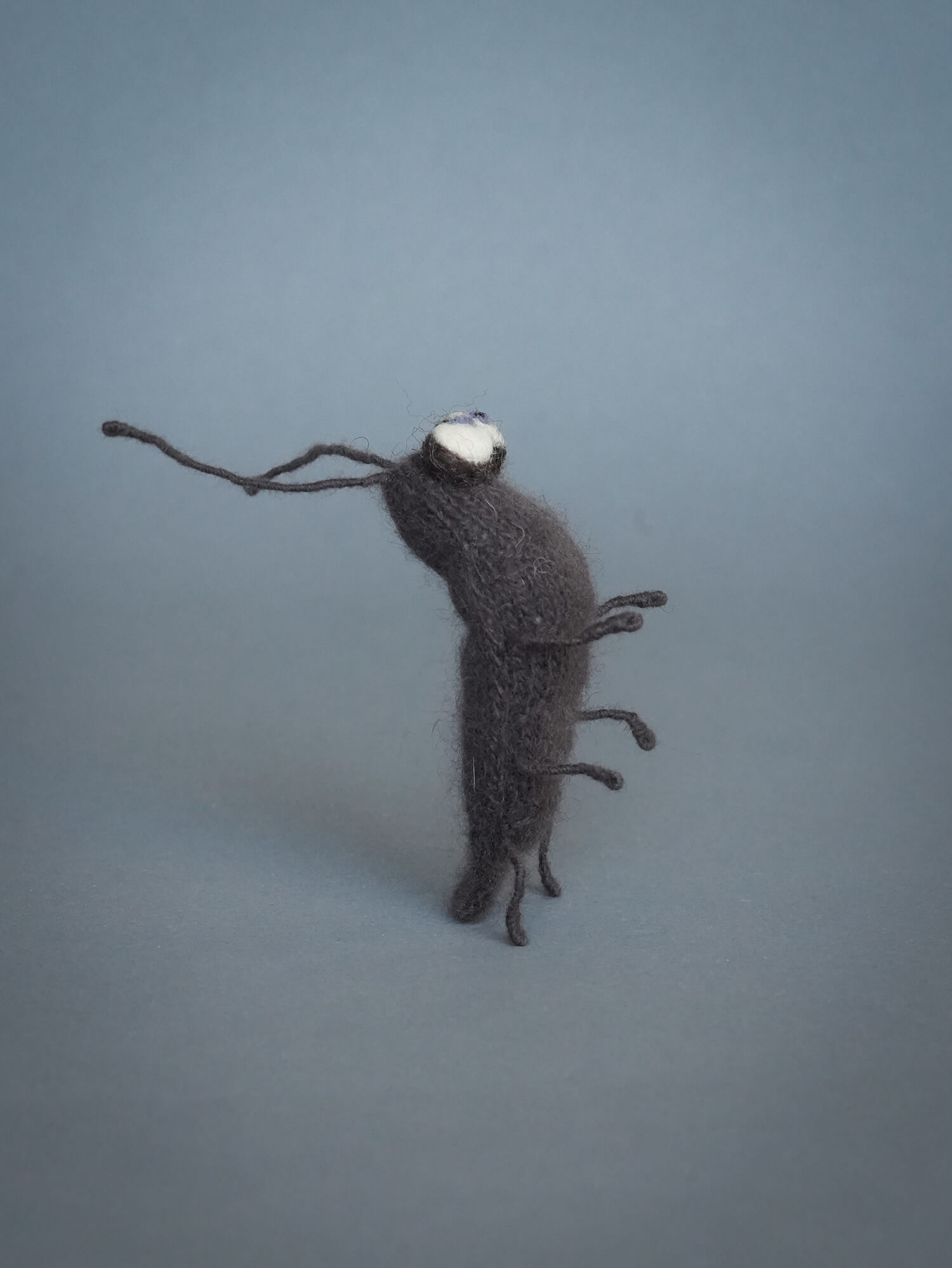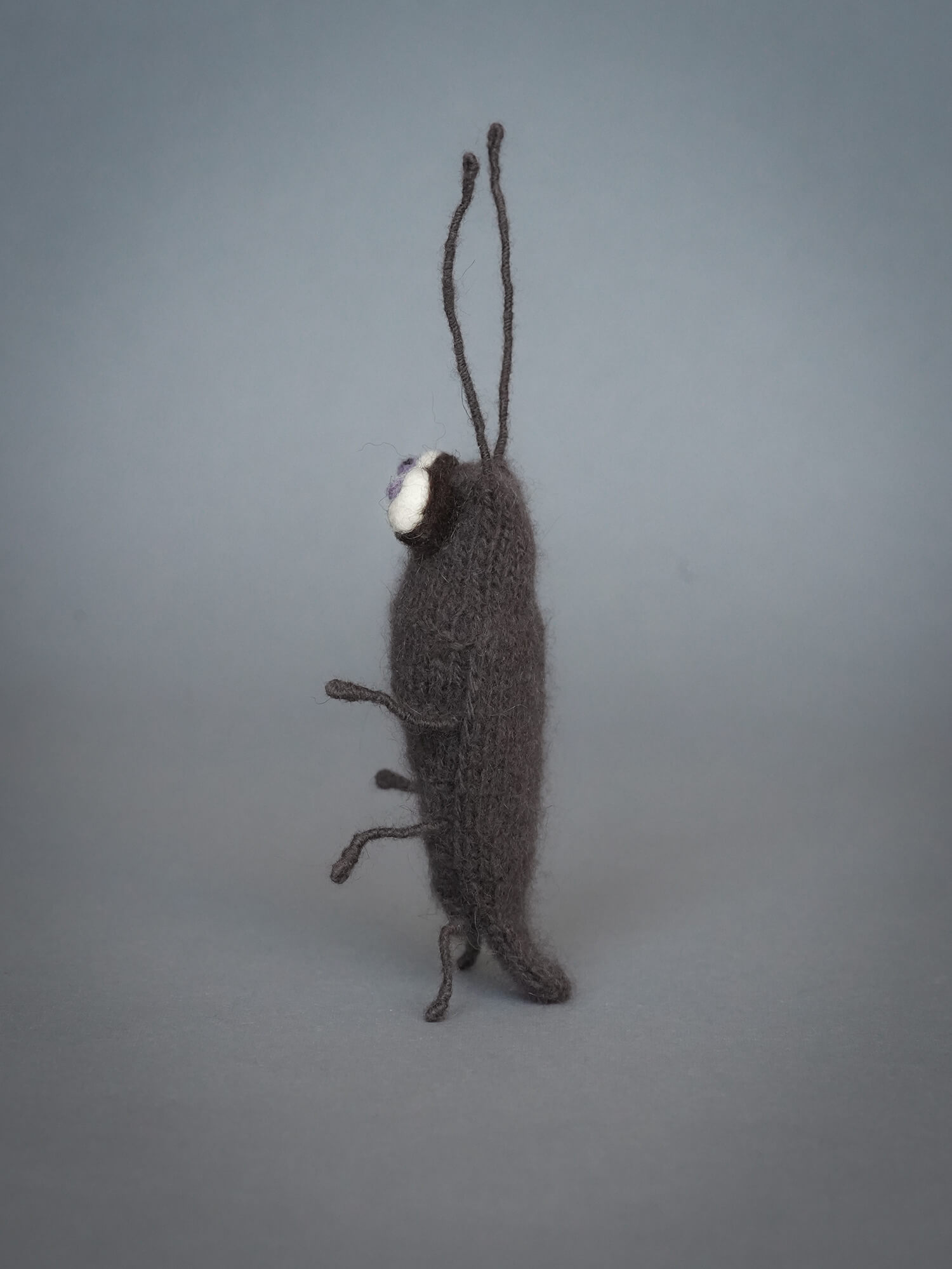 Таракан Фёдор может уверенно стоять в любой позе — хоть на всех лапках, хоть на задних, — благодаря гибкому проволочному каркасу, проходящему через тело, лапки и усики.