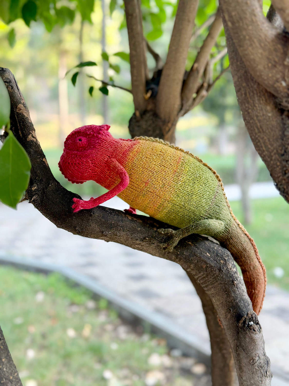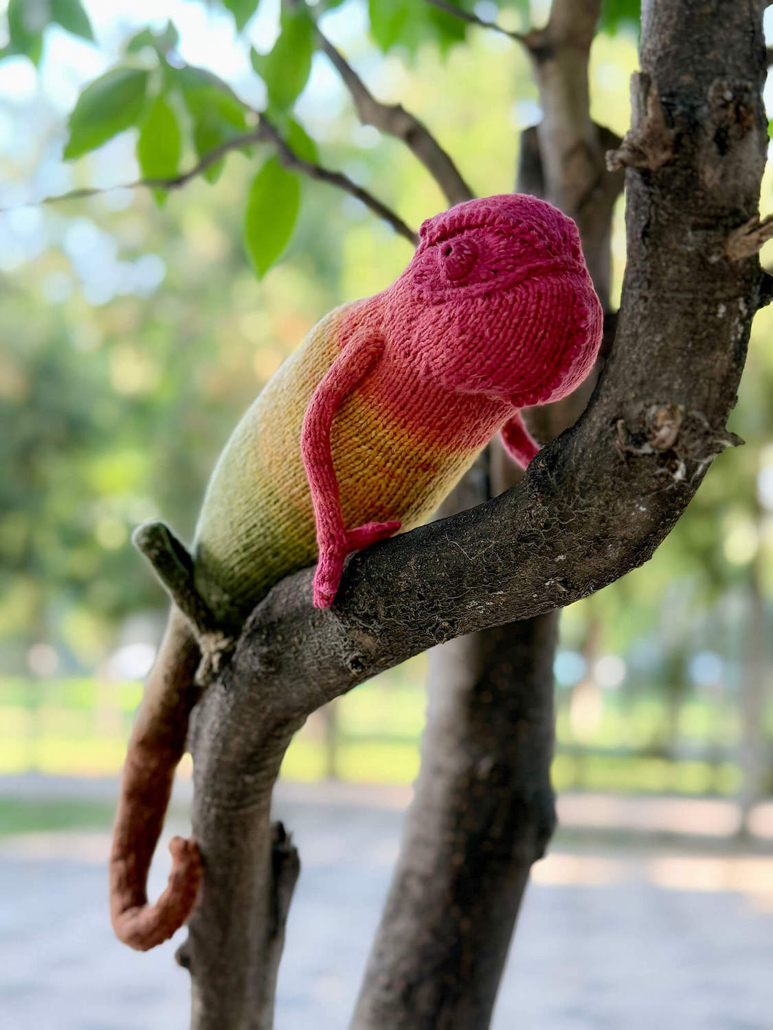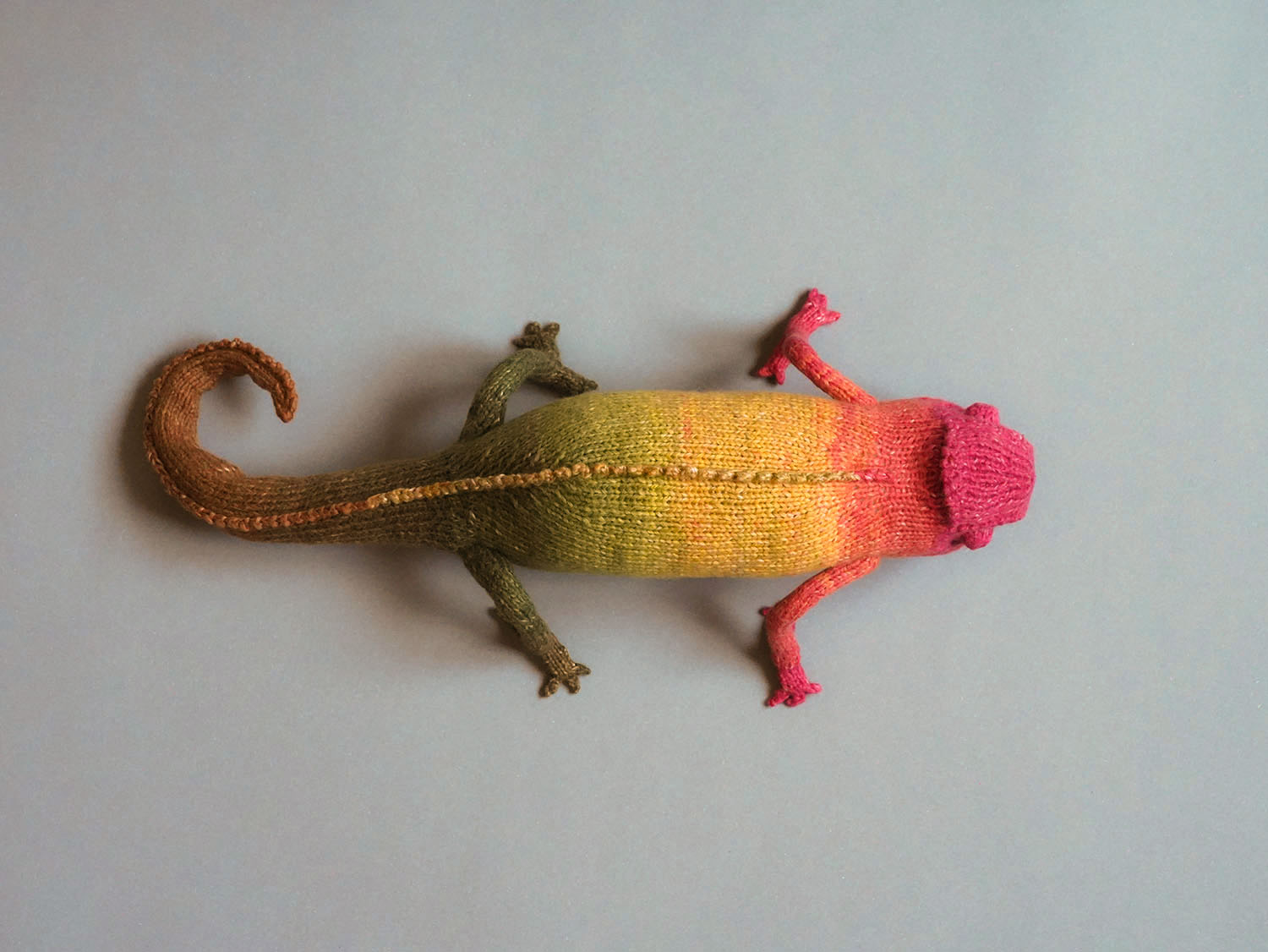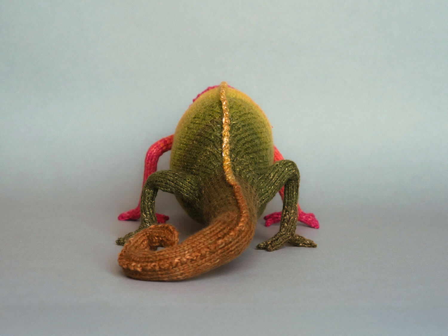 Knitted Chameleon Rain B. Ow — a one-of-a-kind handmade toy with a playful soul and magical charm.