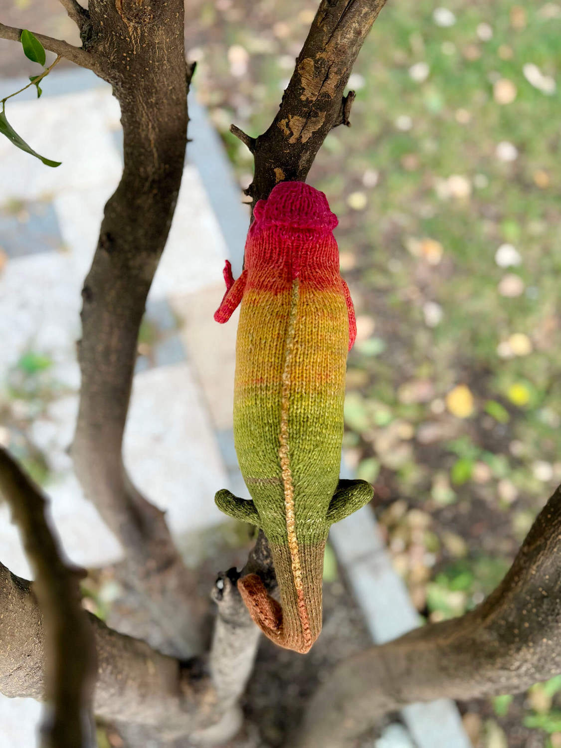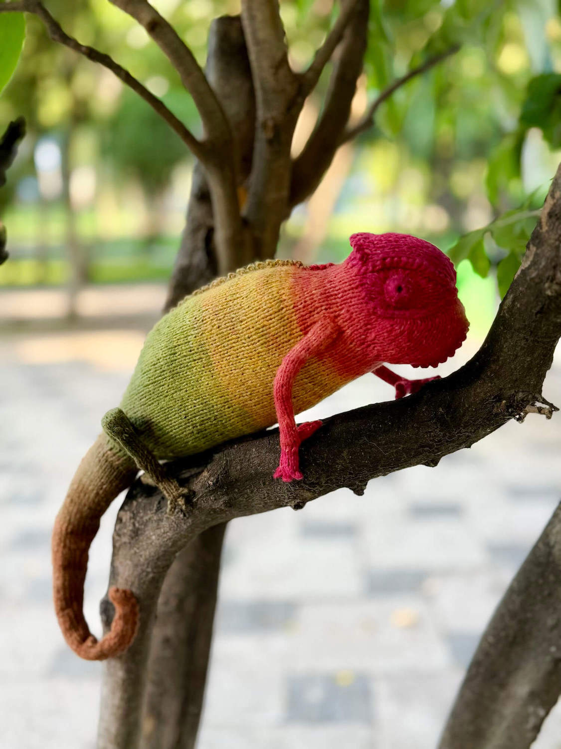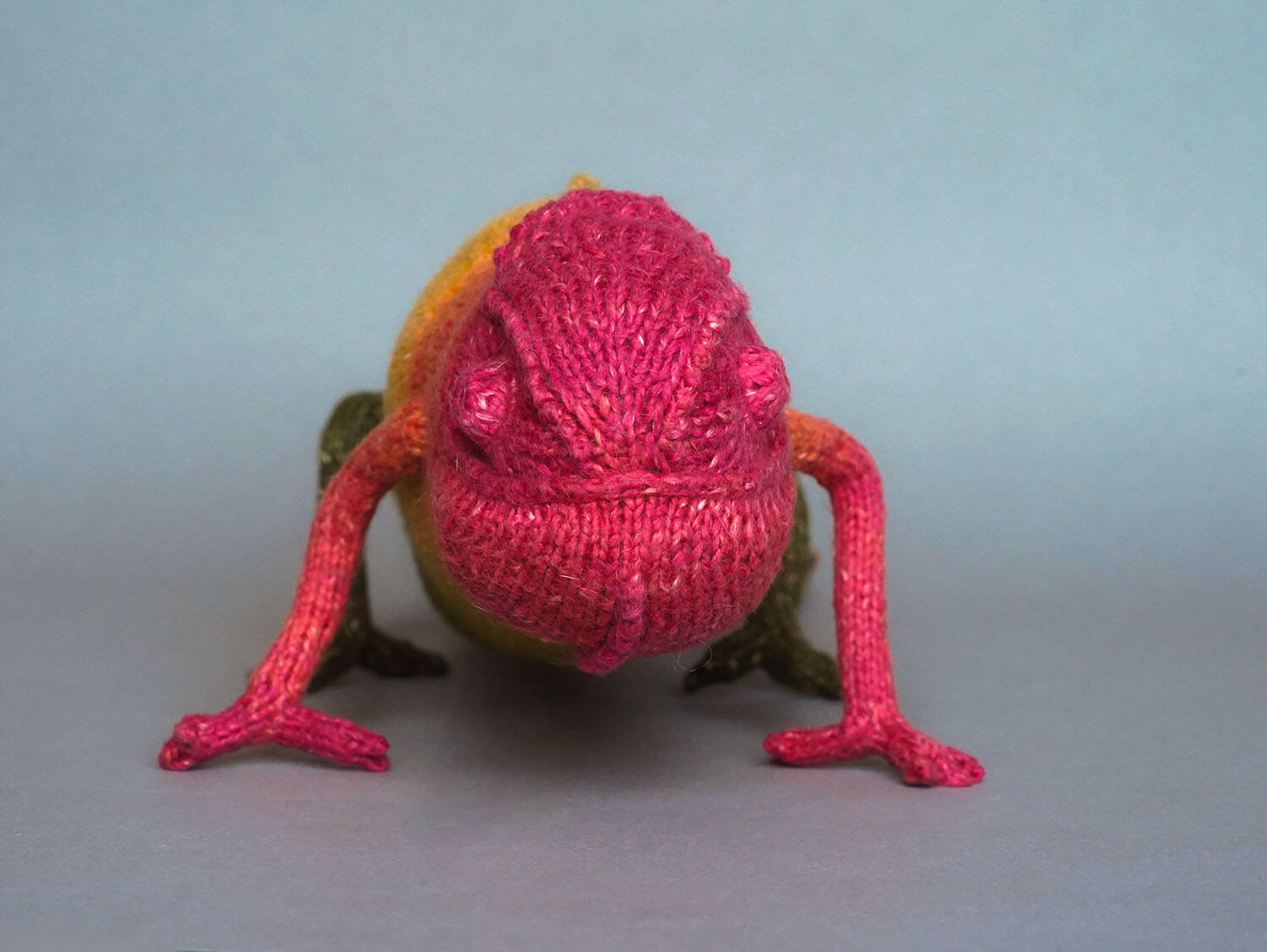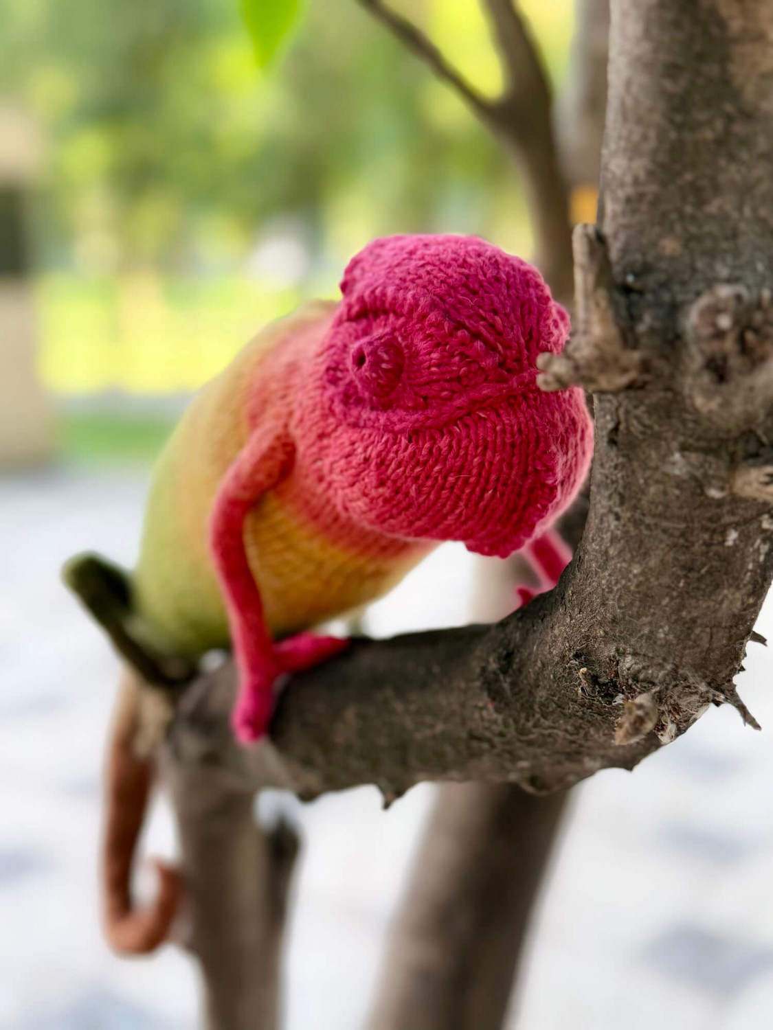 Knitted Chameleon Rain B. Ow — a one-of-a-kind handmade toy with a playful soul and magical charm.
